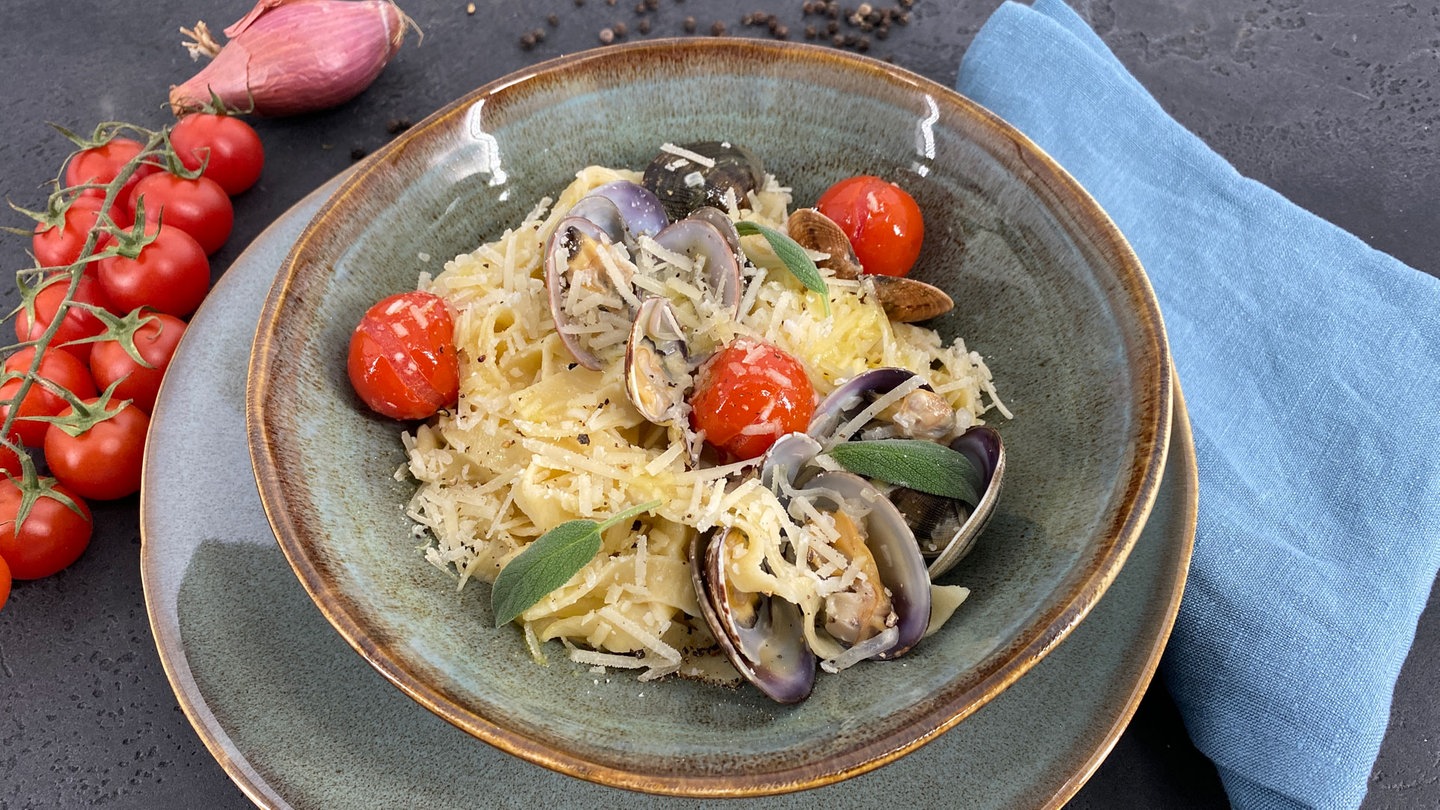 Kevin von Holt Pasta mit Rieslingschaum und Herzmuscheln