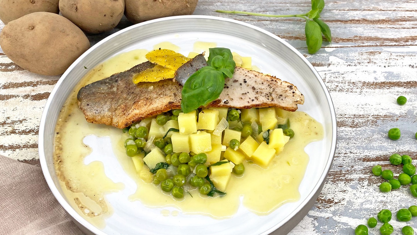 Zarter Fisch aus Süssgewässern und die letzten Lagerkartoffeln bevor die ersten Neuen kommen - alles zusammen mit Kräutern verfeinert, das ist lecker!