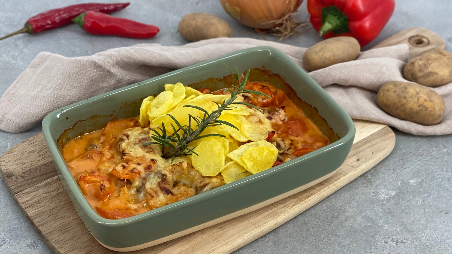 Timo Böckle macht Gyros. Er brät geschnetzelte Wildschweinkeule mit Paprika, Zwiebeln und allerlei Gewürzen an. Dazu gibt’s knusprige Kartoffelscheiben und eine sahnige Soße.