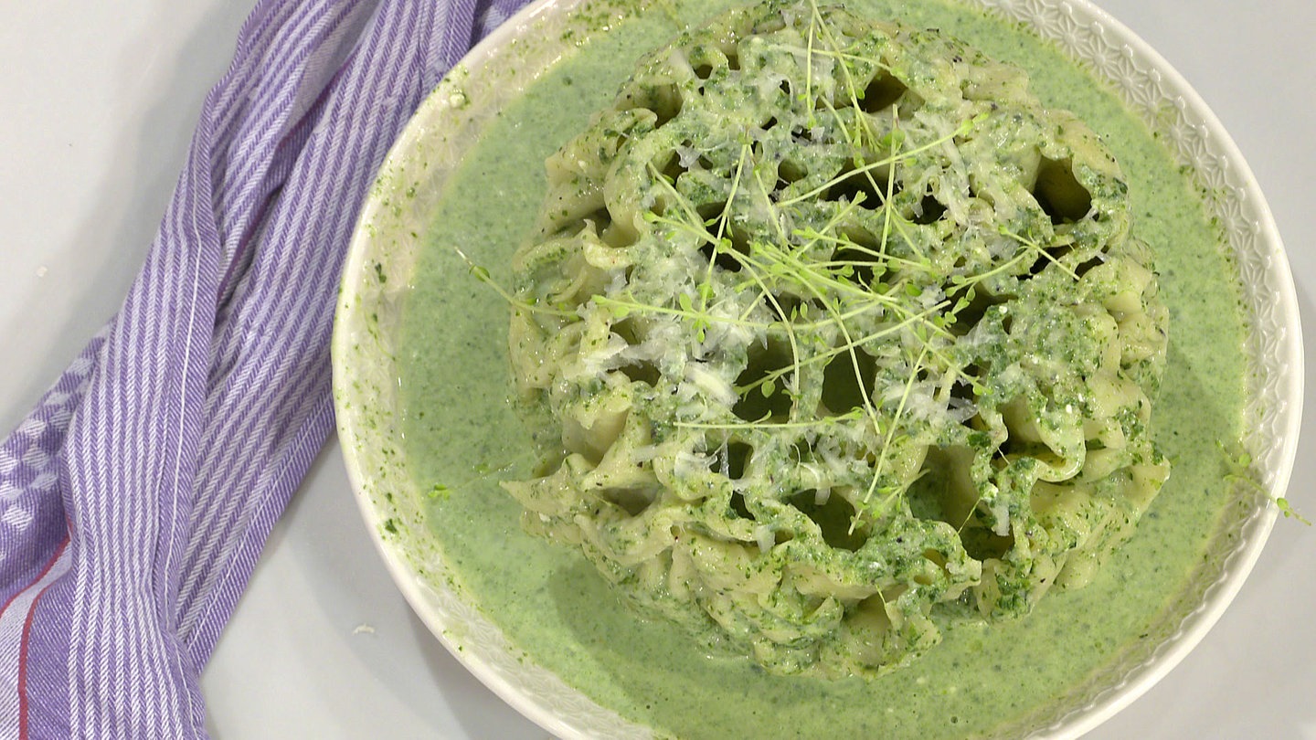 6. Anschließend alles in einem Standmixer oder mit dem Pürierstab zu einer Sauce pürieren und mit Salz und Pfeffer abschmecken.
