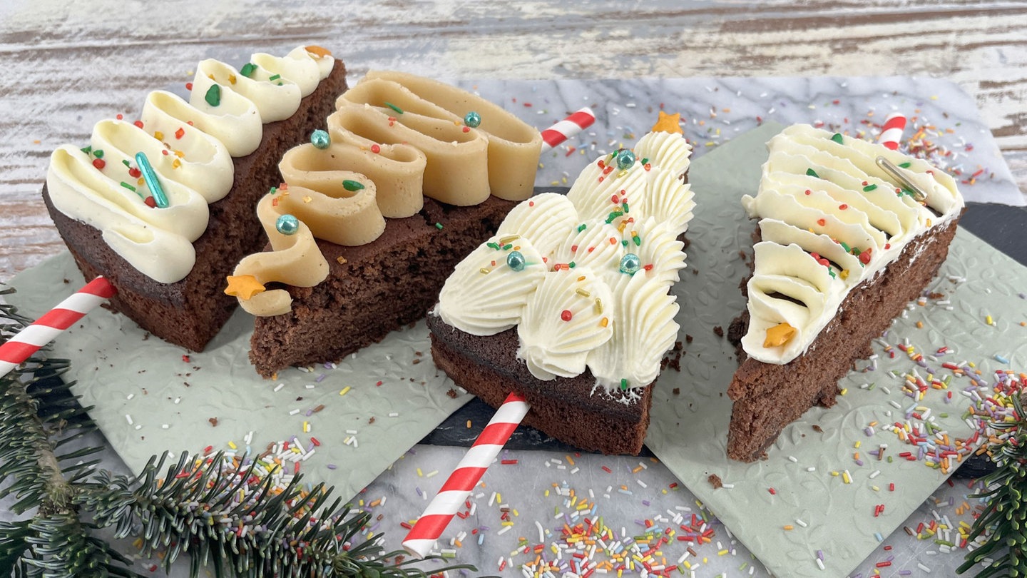 Ein saftiger, schokoladiger Glühweinkuchen der in kleine Tannenbäume verwandelt wird. Ein kleiner Winterwald auf dem Kuchenteller - mehr Weihnachten in einem Kuchenrezept geht nicht!