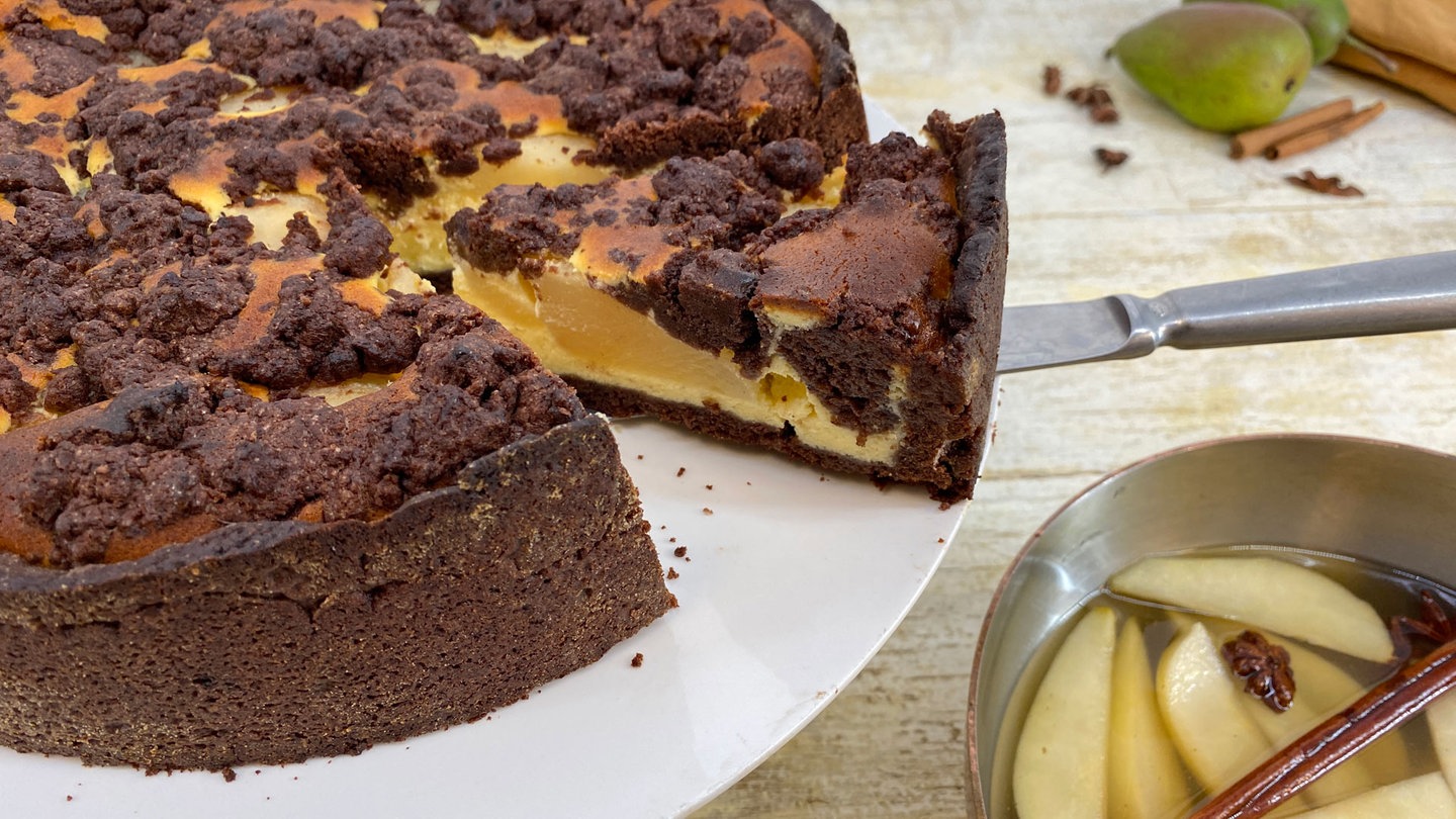 Zupfkuchen - schon allein der Name des Kuchen-Klassikers lässt das Genießerherz höher schlagen. Den Käsekuchen mit Schokomürbeteig verfeinert Theresa Knipschild passend zur Jahreszeit mit pochierten Birnen zu einem unvergleichlichen Geschmackserlebnis.
