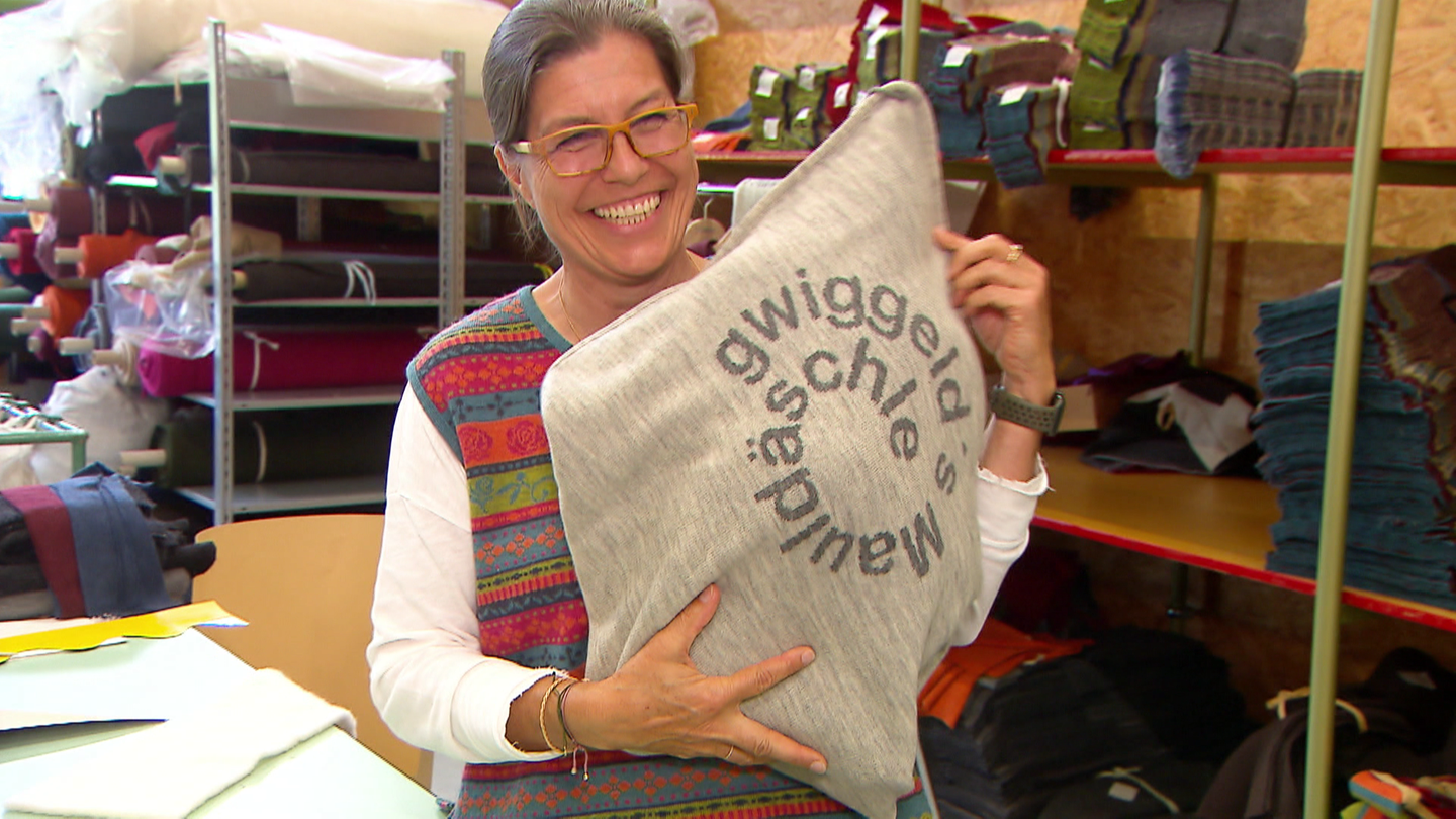 Eigentlich macht die Gächinger Firma Strickmode aus Albschaf-Wolle, aber bei neuen Ideen ist Veronika Kraiser sofort dabei. So ist sie für das Maultaschenfest in Metzingen besonders kreativ geworden. Kochtopf war gestern, diese Maultaschen kommen frisch von der Nähmaschine. Prall gefüllt mit Schafwolle von der Schwäbischen Alb. Man kann sie nicht essen, dafür aber mit auf die Couch nehmen.