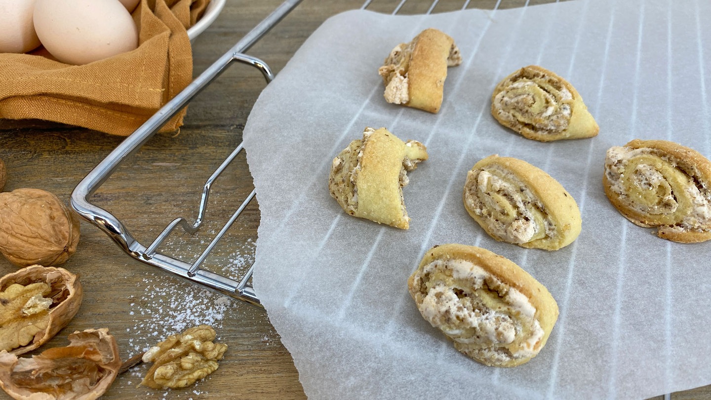 Die österreichischen Weihnachtskekse sind aus einem Hefeteig, der nicht gehen muss, mit einer verführerischen Nuss-Baiser-Füllung. Sie zergehen auf der Zunge, so weich und köstlich sind sie.
