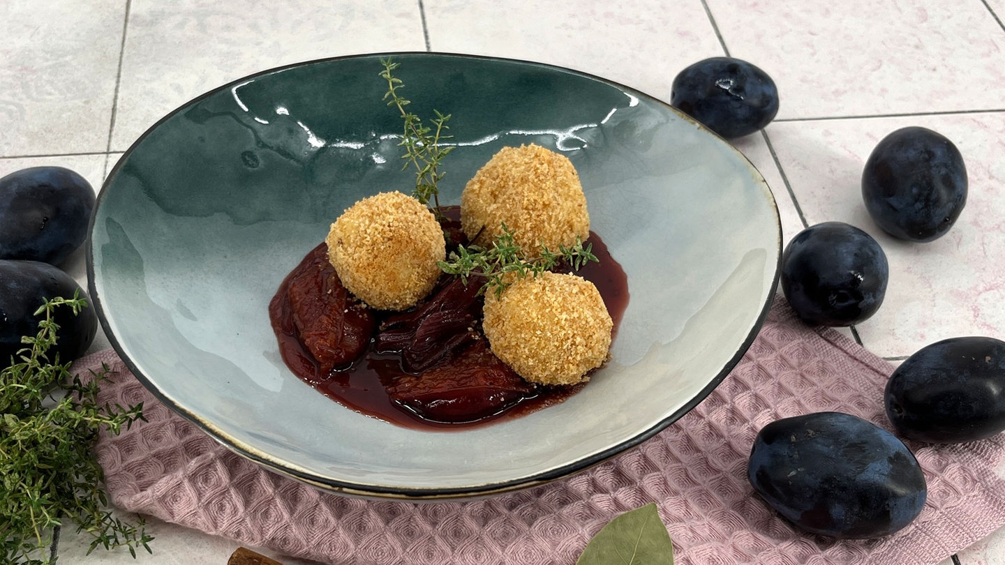15. Knödel mit einer Schaumkelle aus dem Wasser heben, kurz abtropfen lassen. Mit den Toastbröseln bestreuen und dem Kompott anrichten und servieren.