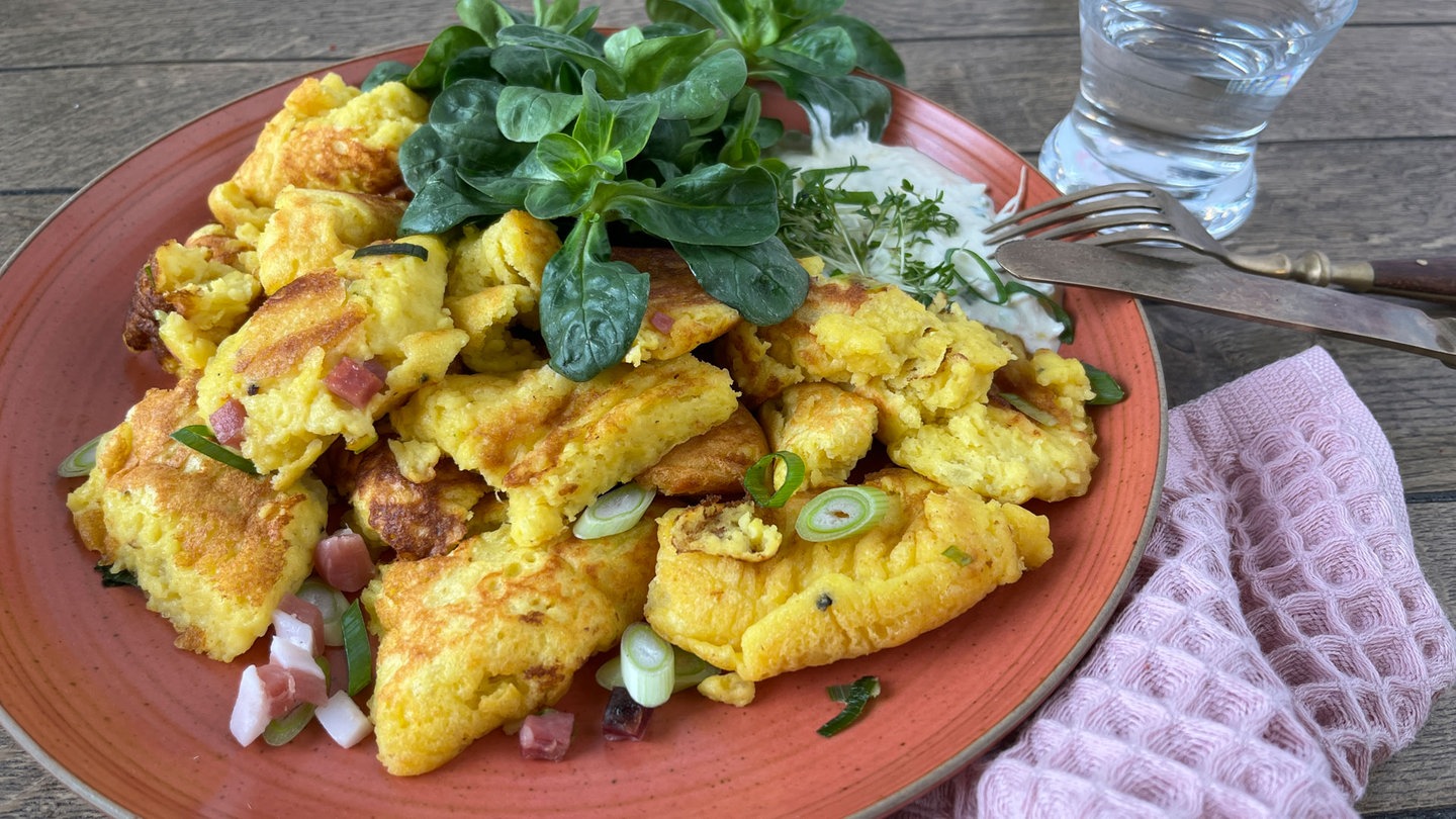Rezept Kartoffel-Kratzete mit Kressequark und Feldsalat