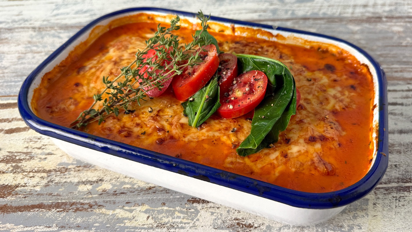 11. Lasagne im Ofen, bei 160-180 Grad Ober- und Unterhitze (Umluft: 160 Grad), ca. 40-50 Minuten garen.