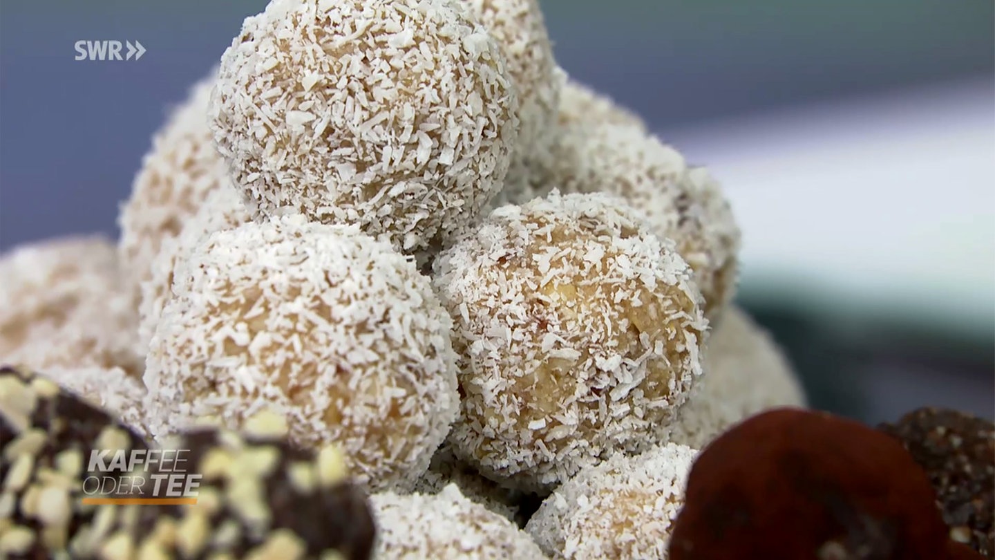 Diese Kugeln sind nicht nur einfach zu machen, sie holen Sie auch blitzschnell aus dem Energietief. Sie bestehen aus Mandeln, Datteln, Rosinen, Kakao und einer Prise Zimt.