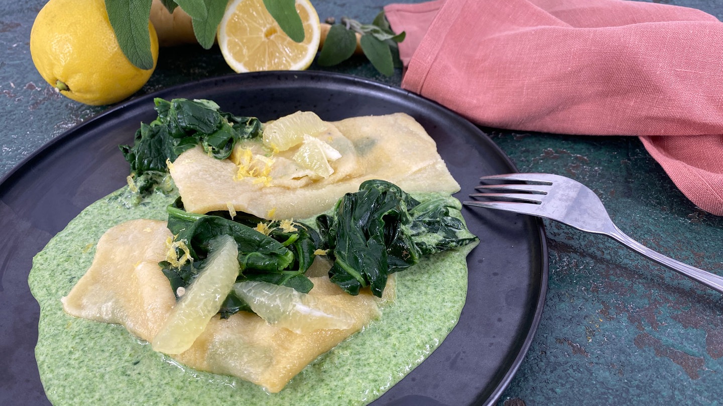 Jaqueline Amirfallah Maultaschen mit Pastinaken und Spinatsauce