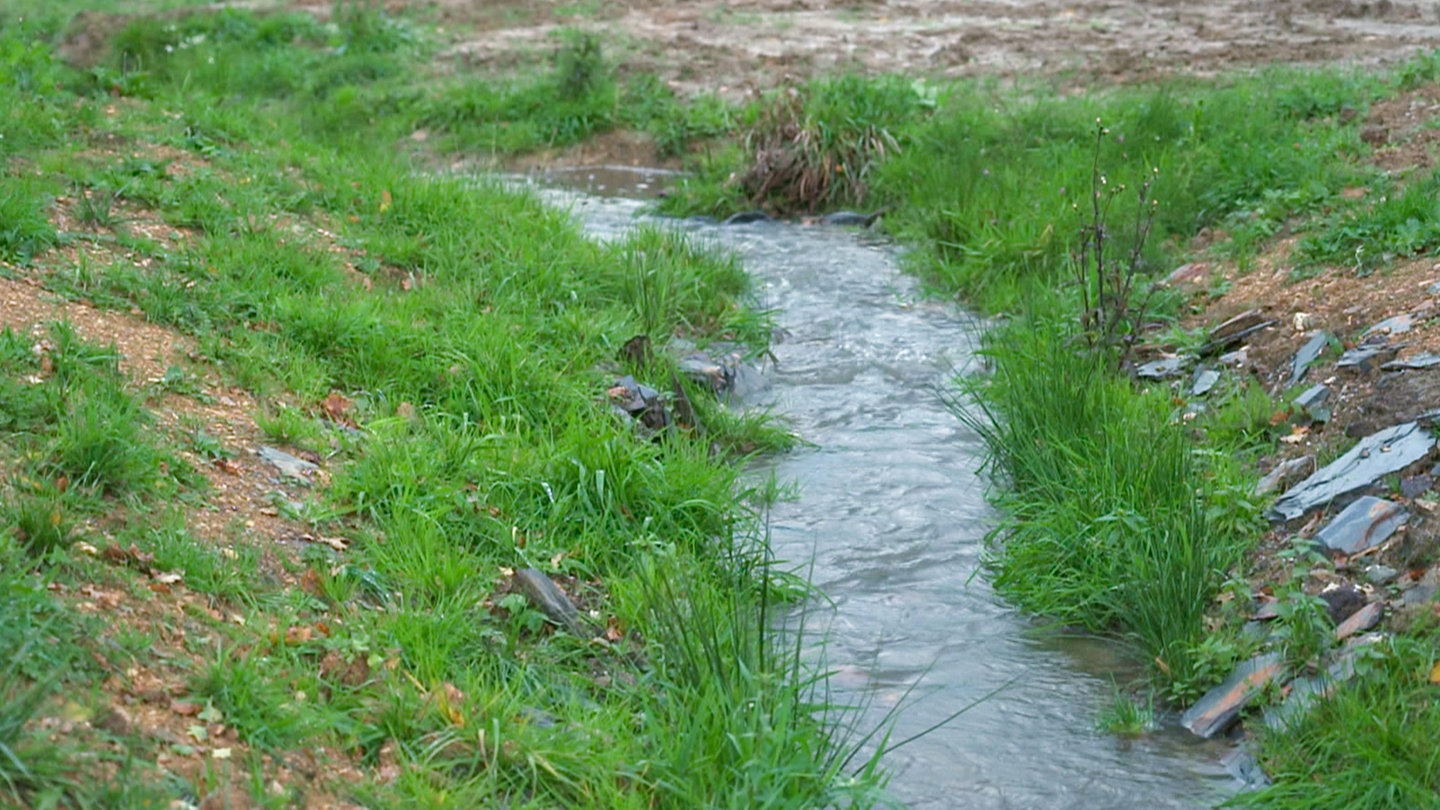 Nach einem Starkregen hat der kleine Bach vor neun Jahren die Landschaft geflutet, die anliegende Straße überschwemmt. Wie viele Bäche wurde auch der Kondbach in den 50er Jahren begradigt. So konnte die angrenzende landwirtschaftliche Nutzfläche vergrößert werden. Doch begradigte Bäche können überschüssiges Wasser nicht aufhalten. Vielerorts kommt es deshalb immer wieder zu Hochwasser.