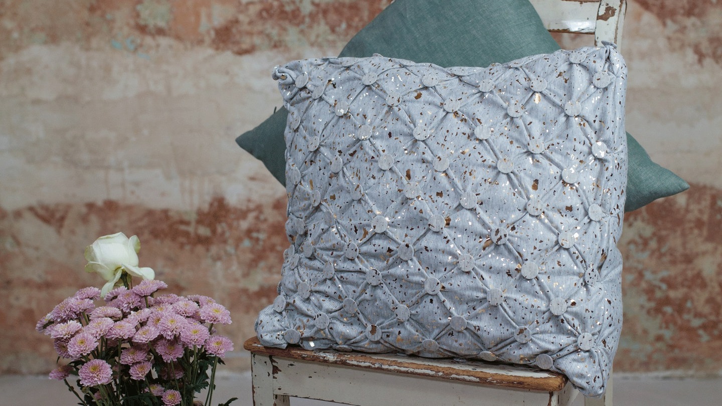 1. Für einen gleichmäßigen Abstand der Buttons das Punkteraster an den Schnittpunkten der Linien durchstechen. Die Reihen (je nach Design) auf die jeweilige Stoffseite markieren und übertragen. Stecknadeln helfen, die Punkte auf beiden Stoffseiten passgenau zu setzen.
