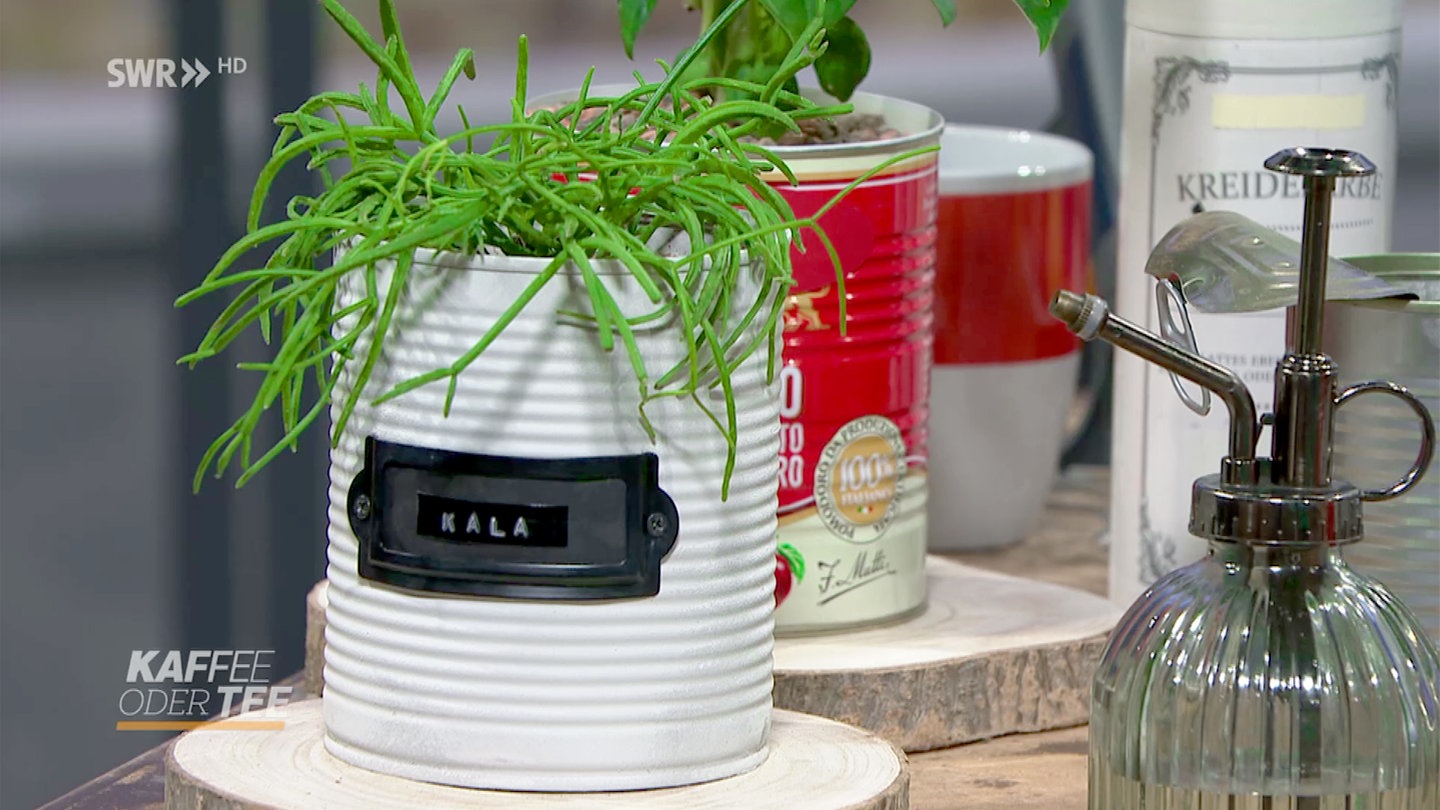 Nach dem Trocknen können die Dosen noch etwas aufgepeppt werden mit einem Lettering, Aufklebern, Bändern, Etiketten mit 3-D-Effekt, Schilder oder sogar Griffen. Alles ist erlaubt was gefällt.