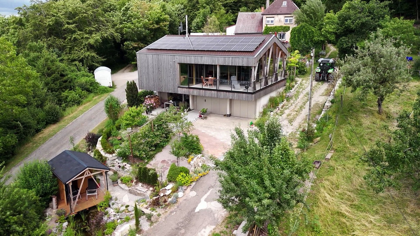 Andrea Jakob wollte da bauen, wo sie aufgewachsen ist und wo ihre Eltern noch leben: auf dem Fürsitz bei Aalen. Aber das war baurechtlich nicht möglich. Mit einem Architekten fand sie jedoch eine besondere Lösung: nämlich Aufstocken! Auf Garagen, die nicht mehr gebraucht wurden. Ein echter Glücksfall.