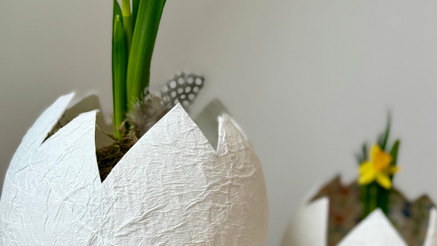 Übertopf für Pflanzen: Osterei aus Toilettenpapier