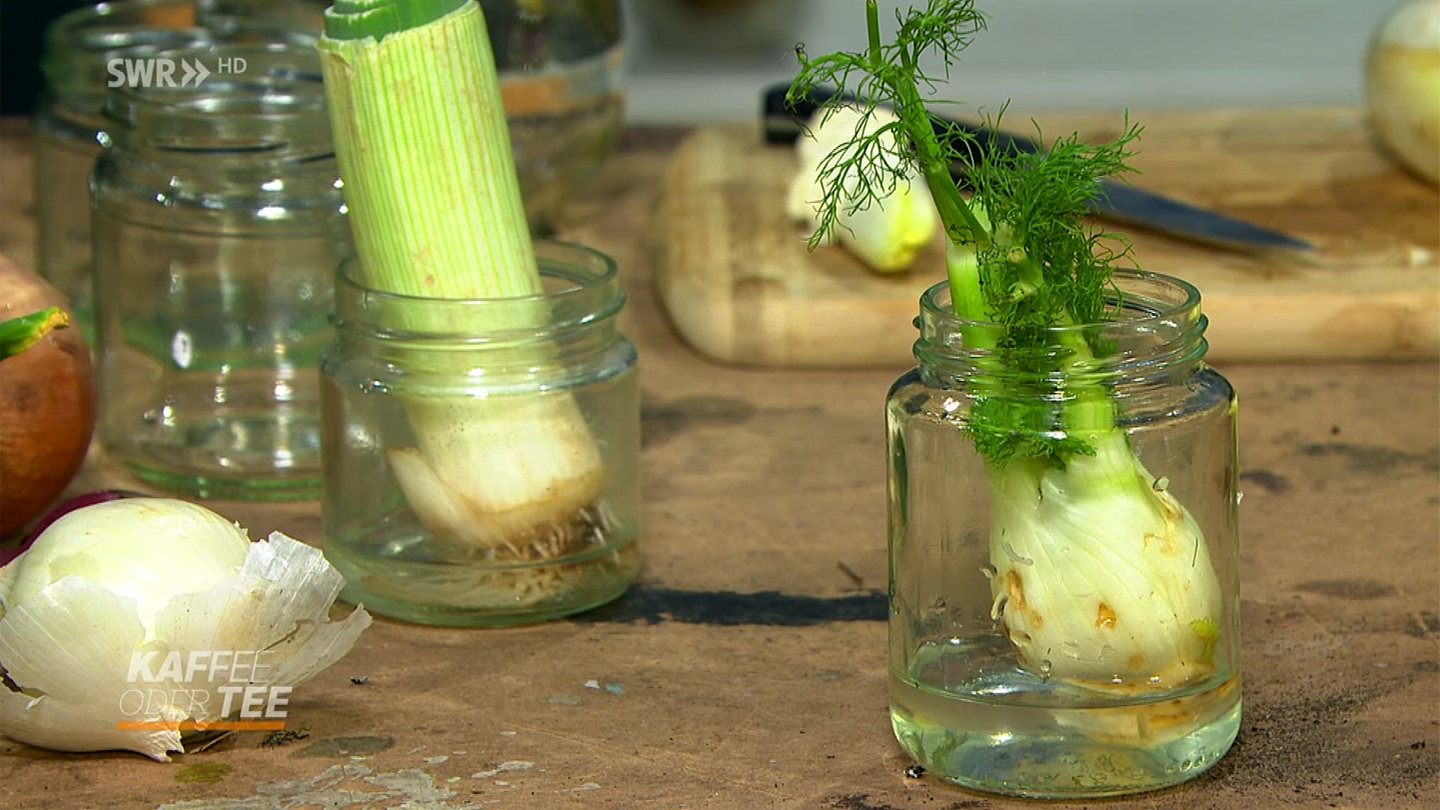 Schnippelabfälle von Zwiebeln, Wurzelgemüse und Salat können nochmal geerntet werden und eignen sich deshalb hervorragend für das kleine Fensterbank-Experiment von Gartenbauingenieurin Heike Boomgaarden.