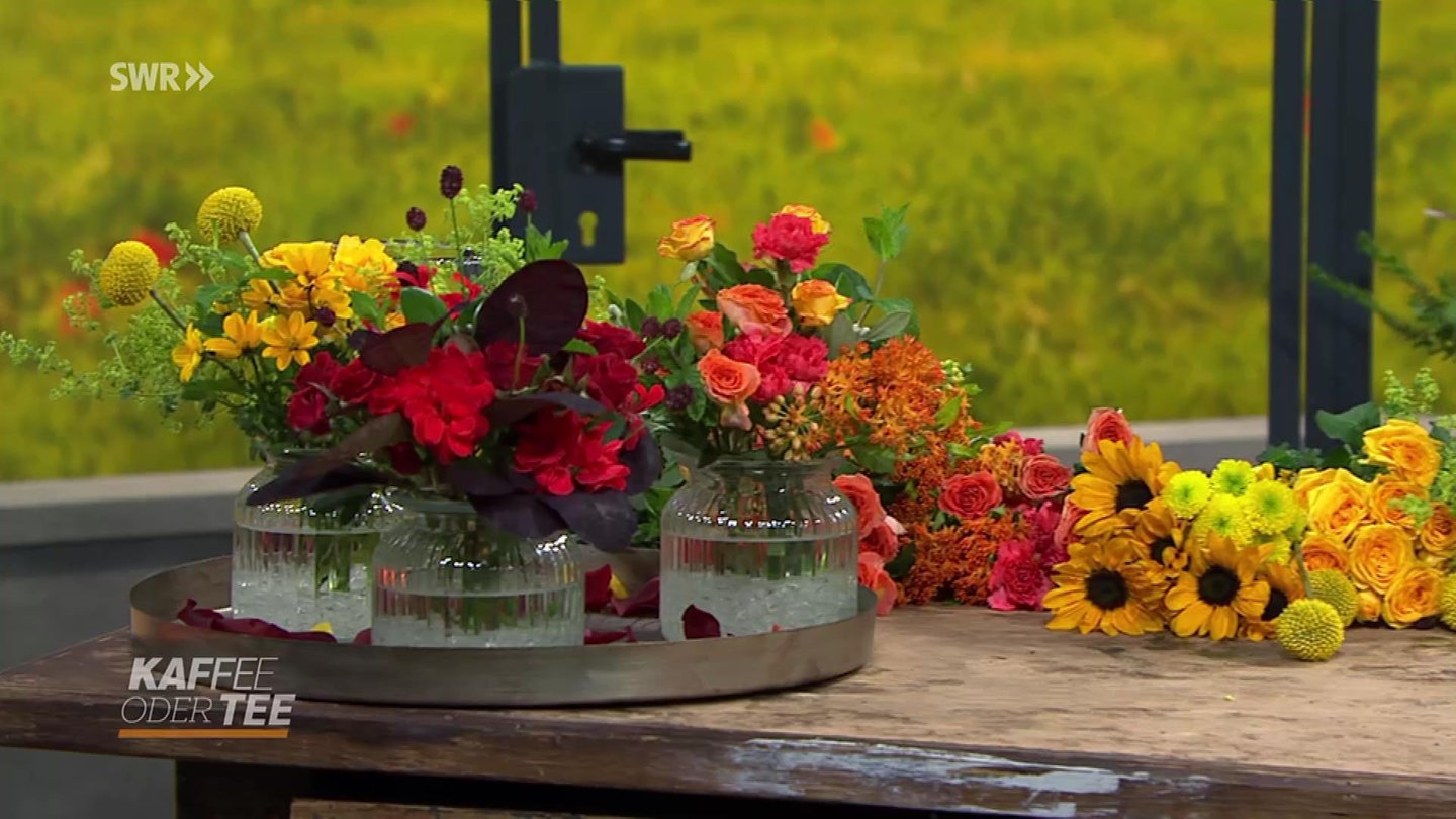 Kleinere Sommerblumen gibt es gerade in allen Farben. Wir zeigen, wie Sie Sie diese, in Form von kleinen gesteckten Sommersträußen mit Farbverlauf, auf den Tisch bringen.