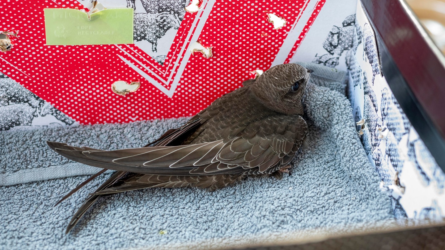 Wenn der Vogel danach fit wirkt, kann man den Karton vorsichtig öffnen und ihn fliegen lassen. Sollte er aber noch verletzt sein (z. B. mit einem gebrochenen Flügel oder einem geschwollenen Auge), braucht er tierärztliche Hilfe. Auf der Webseite wildvogelhilfe.org findet man Auffangstationen und Ansprechpartner in der Nähe, die sich um verletzte Wildvögel kümmern können.