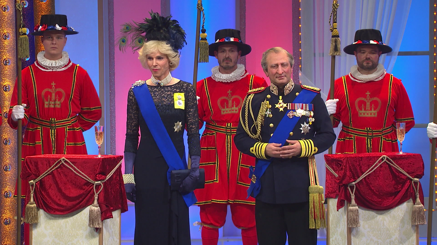 Der 2018 verstorbene Nick Benjamin war nicht nur ein sehr geschätzter SWR-Kollege, sondern auch sehr angesehen in der Bütt bei den Mombacher Bohnebeitel. 2002 brillierte er als Golfer – auf der Bühne viel mehr als auf dem Rasen. Johannes Bersch und Martin Krawietz begeisterten bei "Mainz bleibt Mainz, wie es singt und lacht" als Charles und Camilla. Gelegenheit, mal mitzuzählen, wie oft Berschs Camilla Meenzer Wortwitz in die Tat umsetzt – als Aufforderung, ein Gläschen Sekt auf ex zu trinken.
