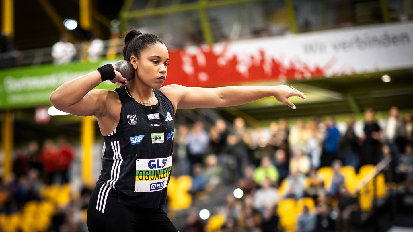 Bei den deutschen Hallenmeisterschaften in Dortmund schraubte die Mannheimer Kugelstoßerin ihre Bestleistung auf 20,37 Meter. Damit gehört Ogunleye trotz starker Konkurrenz zu den Favoritinnen auf Edelmetall. Vor zwei Jahren hatte sie bei ihrem ersten 20-Meter-Stoß bereits Silber bei der Hallen-WM in Glasgow geholt.
