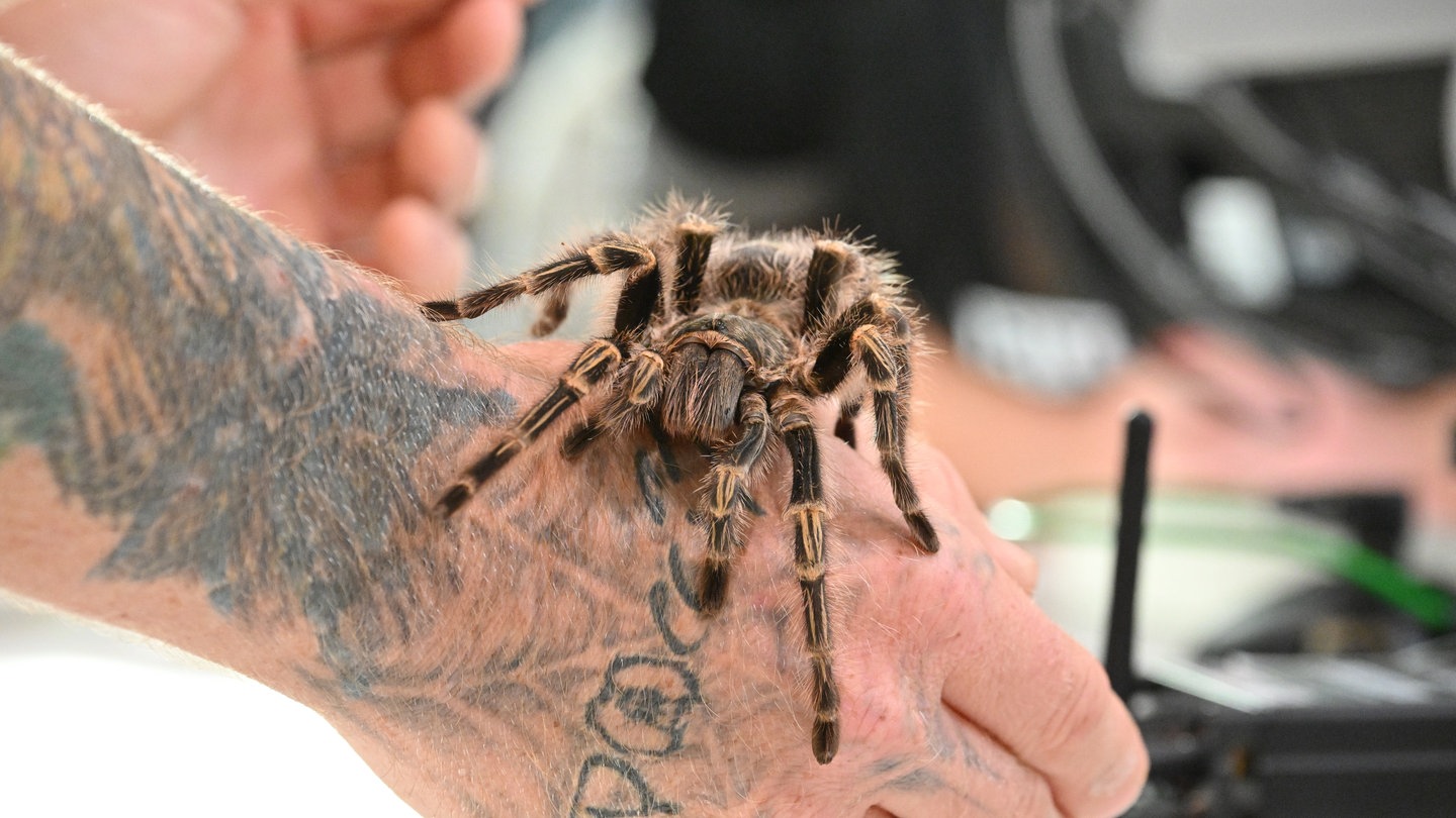 Am Dienstag gab es haarigen Besuch im Gläsernen Studio: Vogelspinne "Igittchen" und ihr Besitzer Patrick Meyer waren zu Gast.