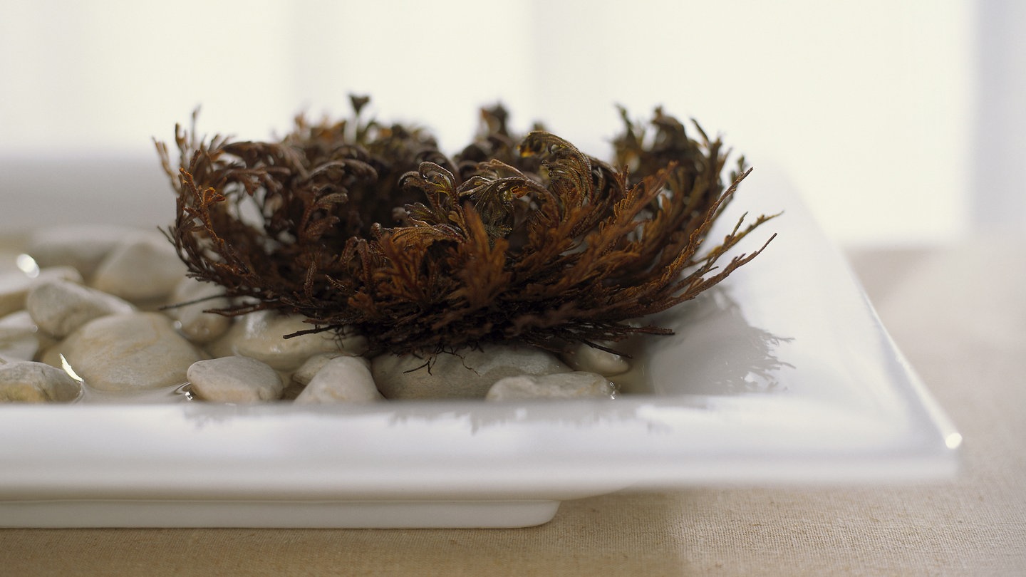 Das eigentliche Naturwunder ist die Tatsache, dass dieser vertrocknete Knäuel durch Kontakt mit Wasser scheinbar wieder zum Leben erwacht und sich entfaltet – als kleine verästelte Pflanze. Die sieht dann aus wie eine kleine grüne Koralle.