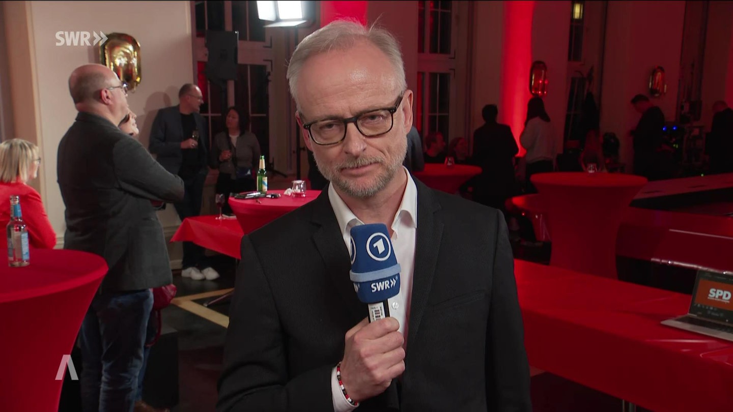 Die SPD gehört zu den Verlierern bei der Landtagswahl. Nach aktuellen Hochrechnungen schafft sie es gerade so noch in den Landtag. Für extrem gute Stimmung führt das bei der SPD-Wahlparty am Stuttgarter Schlossplatz nicht: "mit Freudentaumel hat hier keiner gerechnet" - ARD-Reporter Thomas Denzel über den Wahlabend und den Abwärtstrend bei der SPD.