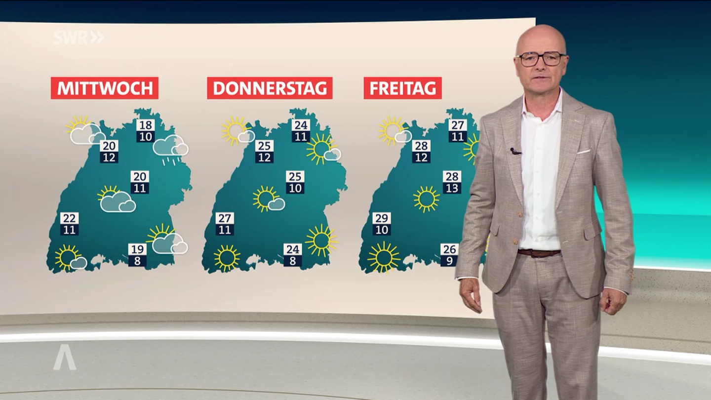 Das aktuelle Wetter für euren Ort findet ihr jederzeit in unserer SWR Aktuell-App oder auf unserer Wetter-Seite. Den Wetterbericht von gestern Abend könnt ihr hier anschauen: