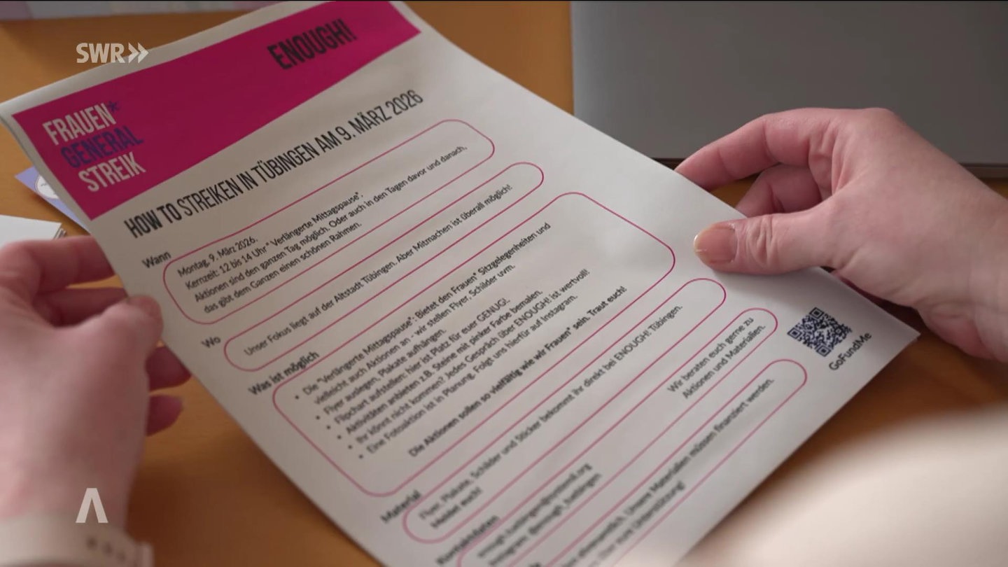 Sara Leicht und ihre Mitstreiterinnen wollen am 9. März für mehr Gerechtigkeit und Gleichheit von Männern und Frauen streiken. Unter dem Motto "ENOUGH" - Genug!" rufen sie zu einem Frauenstreik auf. Sara Leicht ist als Organisatorin in Tübingen von Anfang an dabei. Sie ärgert vor allem der Gender Pay Gap, also die Ungleichheit bei der Bezahlung von Männern und Frauen. Wenn es nach ihr geht, sollen möglichst viele Frauen und auch Männer am 9. März zwischen 12 und 14 Uhr eine verlängerte Mittagspause machen und damit "Frauen sichtbar machen", wie sie sagt.