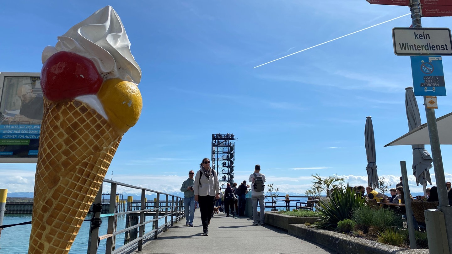 Das sonnige Wetter hat über die Osterfeiertage zehntausende Besucherinnen und Besucher an den Bodensee und nach Oberschwaben gelockt. Vor den Eisdielen an der Uferpromenade in Friedrichshafen bildeten sich lange Schlangen. Viele der beliebten Ausflugsziele ziehen eine positive Bilanz.