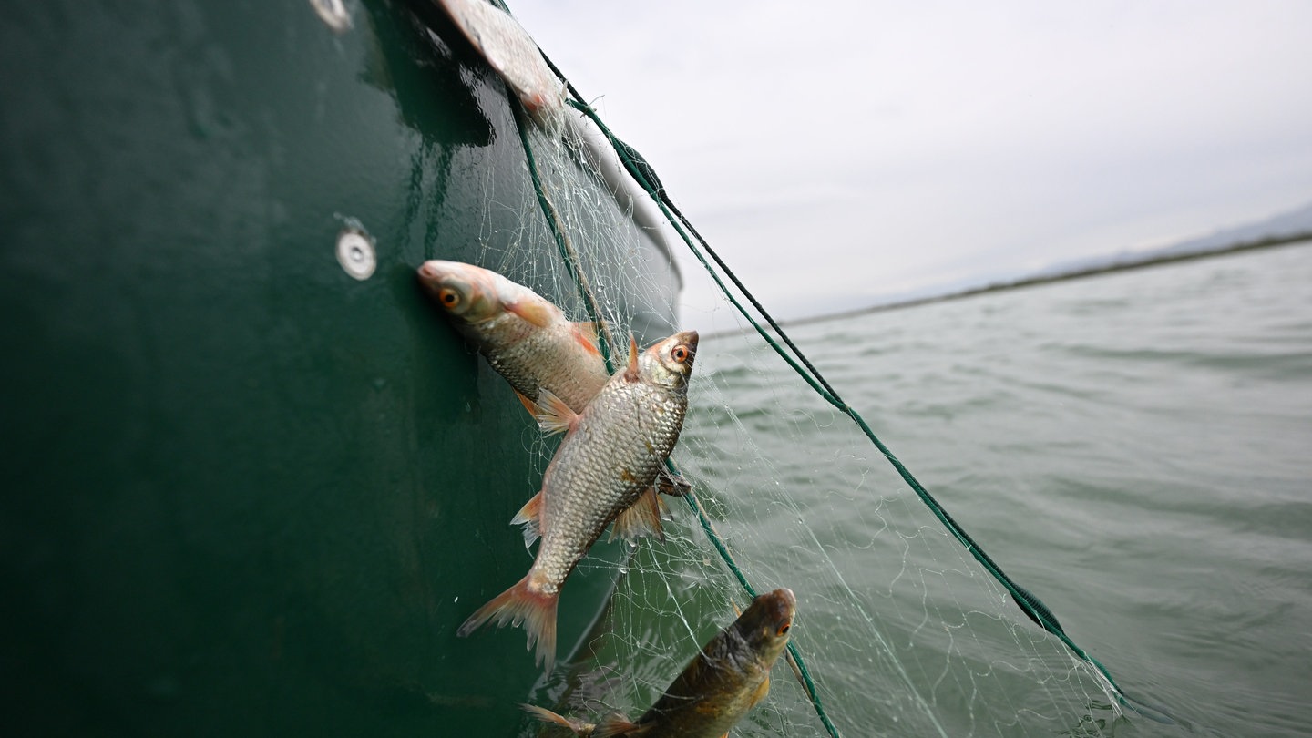 "Der Fang am Bodensee ist in den letzten Jahren viel, viel schlechter geworden", sagt Berufsfischer Roland Stohr aus Wasserburg (Kreis Lindau). Ihm gehe nur noch ein Bruchteil von dem ins Netz, was er früher gefangen habe. Zugleich darf seit 2024 der eigentliche Bodenseefisch, das Felchen, am Obersee drei Jahre lang nicht mehr gefangen werden. Weil der Bestand so stark zurückgegangen ist, dass die Art gefährdet ist.