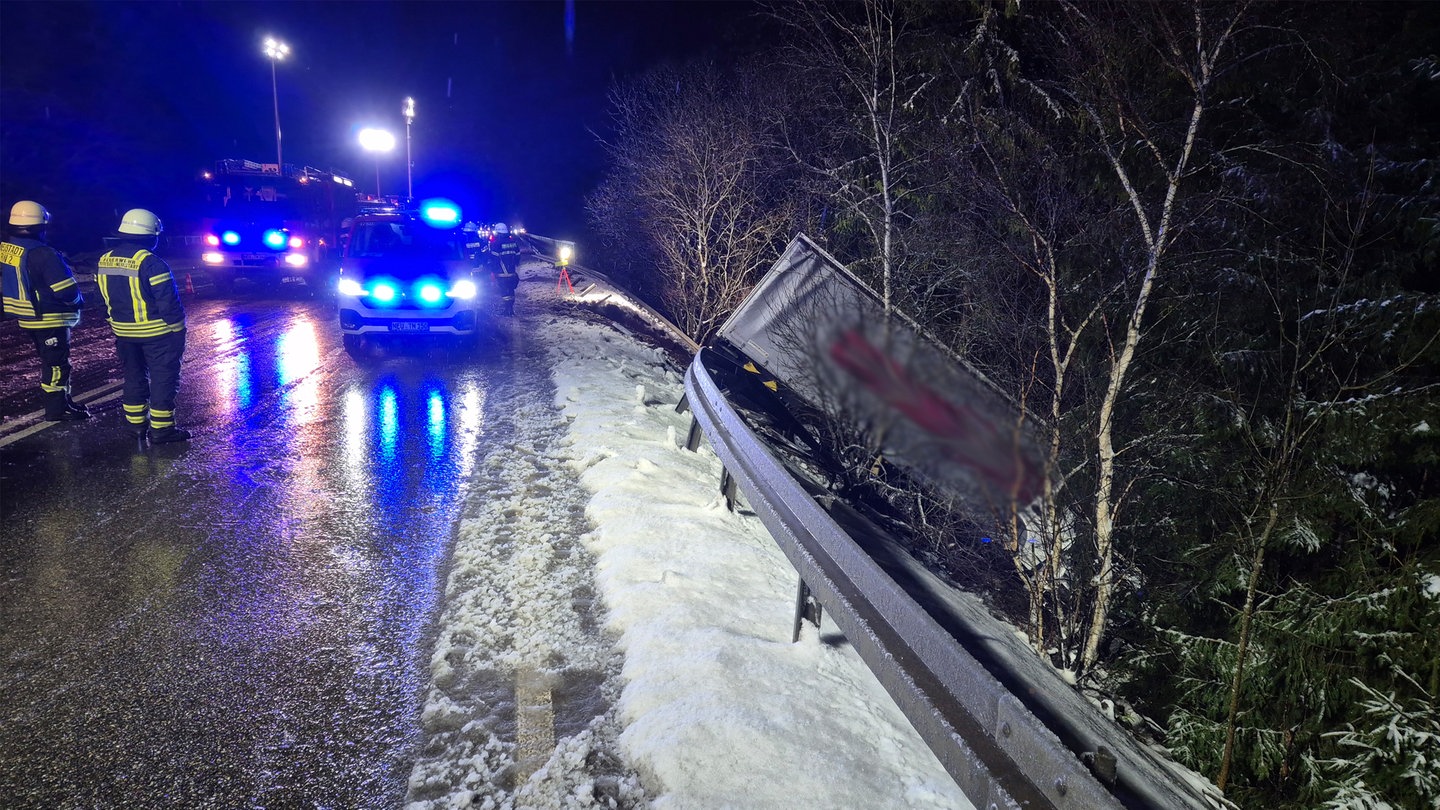 Lastwagen durchbricht Leitplanke bei Titisee-Neustadt