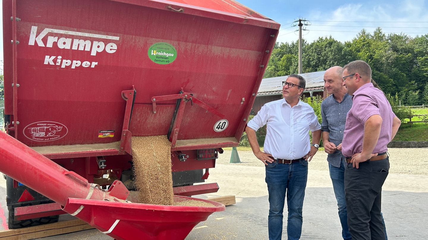 Die Landwirtschaft in Baden-Württemberg hatte mit sehr wechselhaftem Wetter zu kämpfen. Der Frühling und Frühsommer brachte viel Regen und wenig Sonne. Das ist vor allem für das Getreide problematisch. Dennoch ist laut Landwirt Gerd Schonder von der Betriebsgemeinschaft (BG) Neuhof in Schöntal (Hohenlohekreis) die Ernte zumindest in seiner Region "durchschnittlich" ausgefallen. Das sagte er am Donnerstag bei einer Presseveranstaltung in Schöntal. Der baden-württembergische Landwirtschaftsminister Peter Hauk (CDU) forderte eine Ausweitung der bereits bestehenden Mehrgefahrenversicherung in der Landwirtschaft. Die bisherige Ernte bezeichnete er als regional unterschiedlich. Die Schäden durch Hochwasser seien aber zu kompensieren.