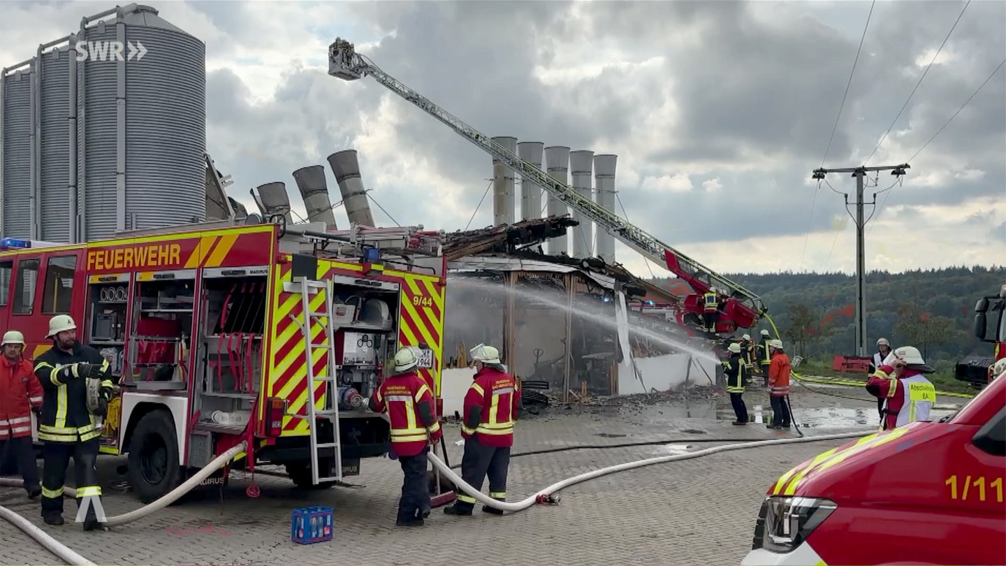 Die Polizei nennt eine mögliche Ursache für den Großbrand in Niederstetten. Dabei sind 10.000 Hühner umgekommen. Die Feuerwehr war bis in die Nacht hinein vor Ort.