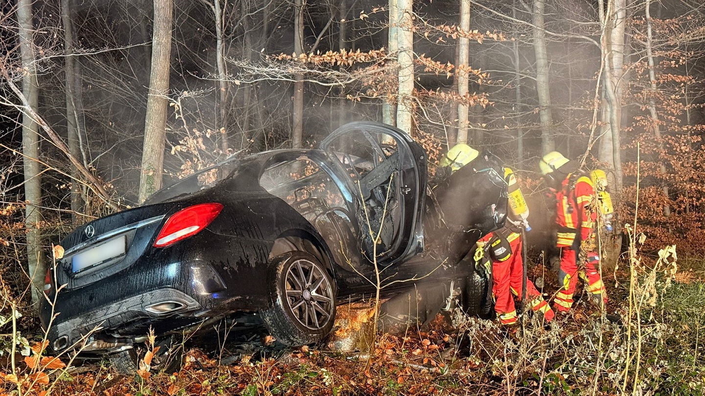 Bei Löwenstein (Landkreis Heilbronn) hat es am Donnerstagabend einen schweren Wildunfall gegeben. Nach Polizeiangaben wich ein Autofahrer einem Reh aus, verlor dabei die Kontrolle über sein Fahrzeug und fuhr einige Meter in den Wald. Dort prallte er gegen einen Baum. Der Wagen fing daraufhin Feuer und brannte vollständig aus.