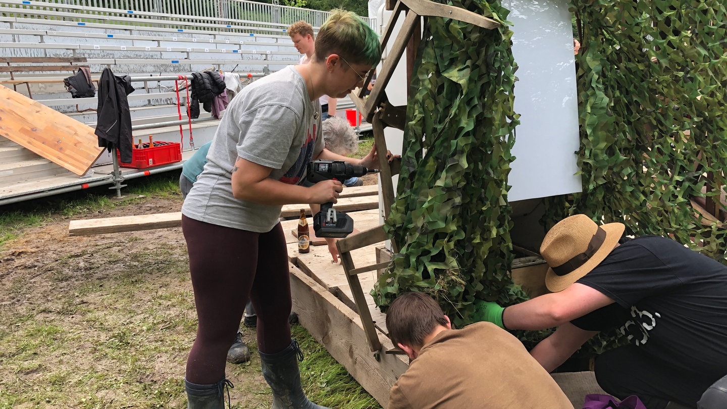 Doch bevor die Premiere über die Bühne gehen kann, muss eben erst einmal aufgeräumt werden: Alles ist voller Schlamm und muss abgespritzt werden, bevor es zu müffeln beginnt. Die Vereinsmitglieder ziehen am Mittwoch Treibgut aus dem Rasen und den Zäunen und geben ihr Bestes, die drei Bühnen zu reparieren. Zwei der drei Bühnen hätten schon angefangen zu schwimmen. Noch als das Wasser kniehoch war, machten einige der Mitglieder die Bühne kurzerhand zu einem Floß.