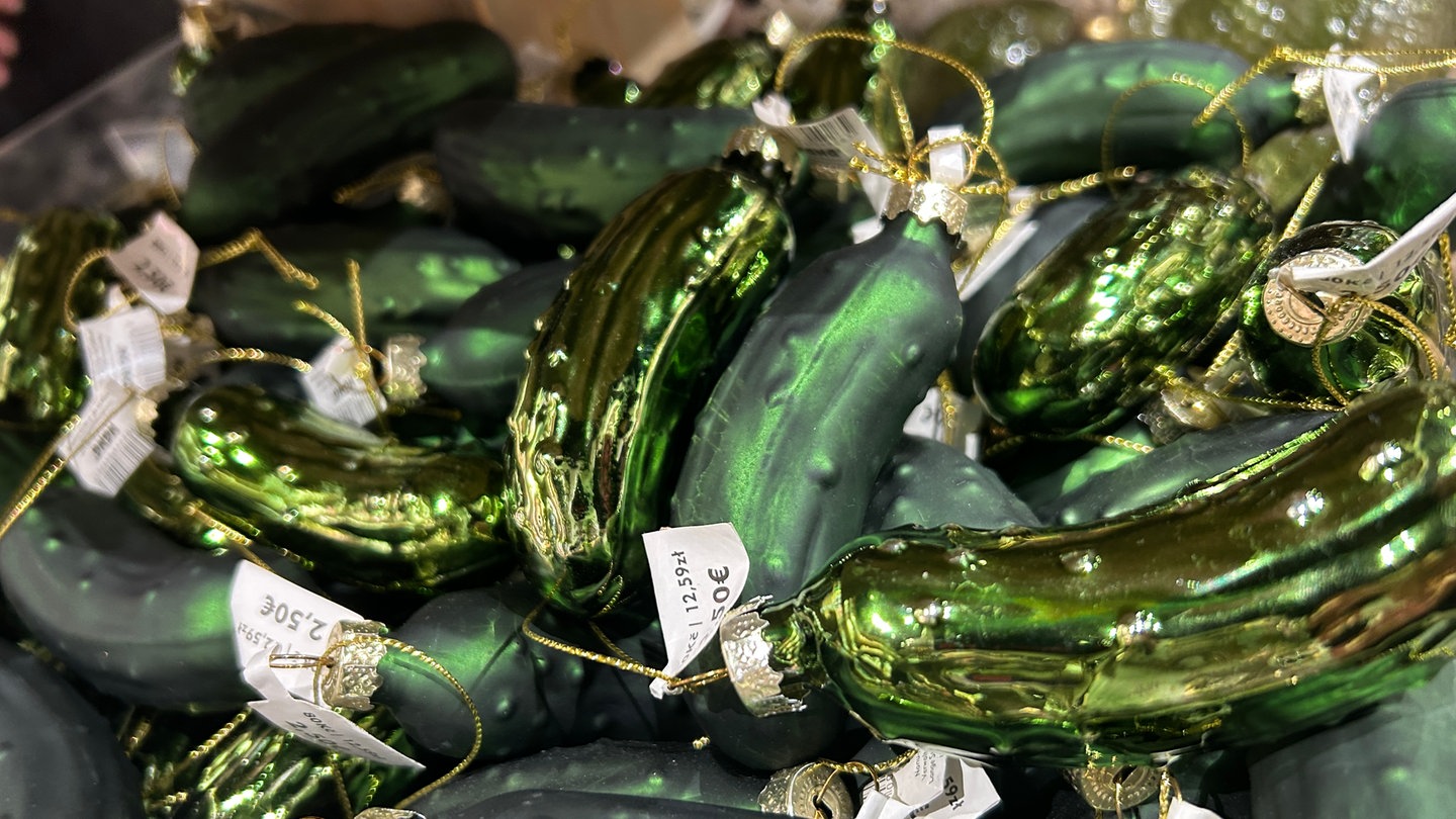 Ebenfalls im Trend: die Weihnachtsgurke. Dahinter steckt ein (nicht essbares) Schmuckstück, das im Weihnachtsbaum versteckt wird. Wer die Deko zuerst findet, bekommt ein zusätzliches Geschenk.