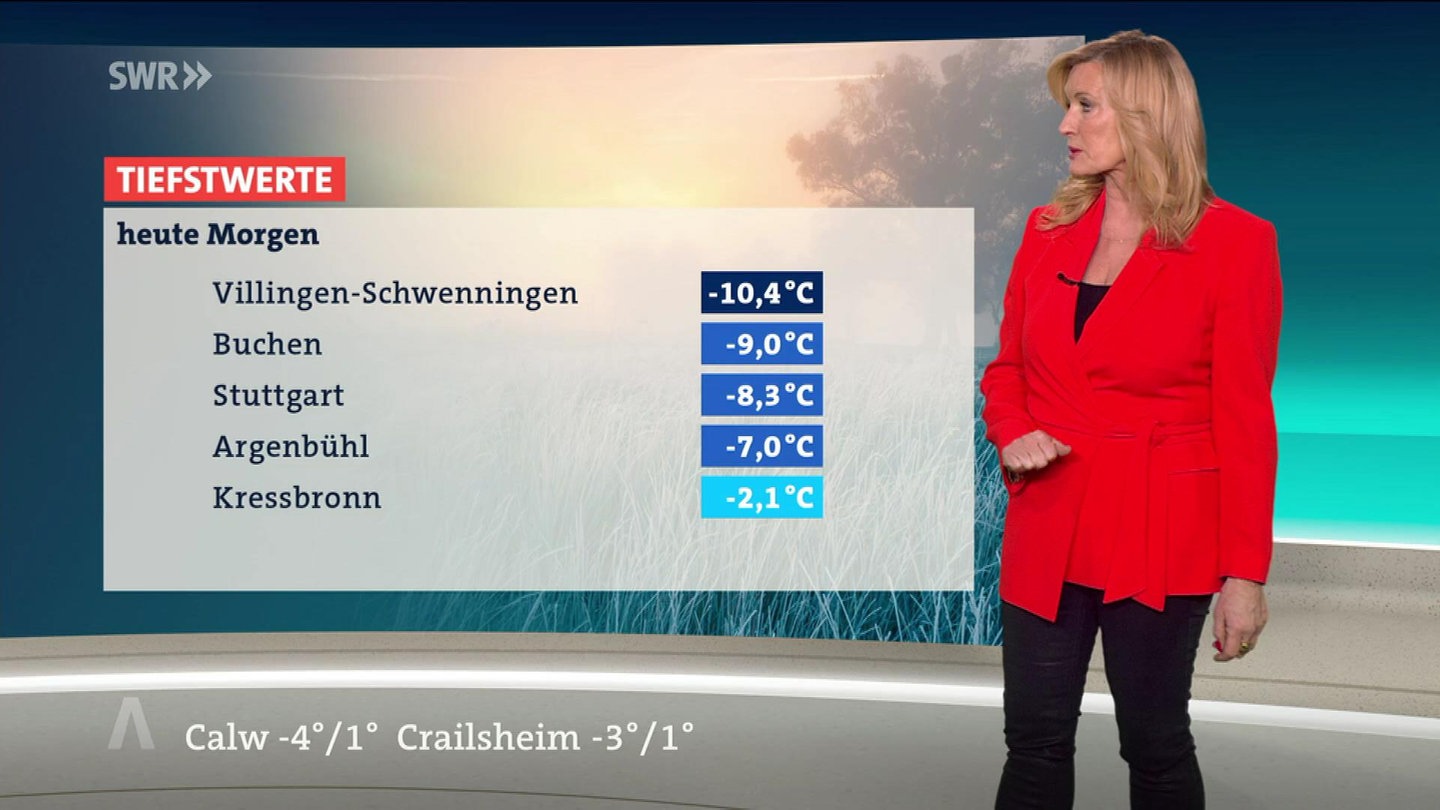 Am Dienstag bleibt es den Angaben nach zunächst vielerorts stark bewölkt, mit Glätte in den Staulagen. Im Tagesverlauf könnte es von Norden her etwas freundlicher werden. Die Höchsttemperaturen liegen dann wohl zwischen minus 3 Grad auf der Alb und plus 3 Grad am Rhein. Der Wind wehe schwach aus nördlichen Richtungen, auf dem Feldberg seien stürmische Böen möglich.