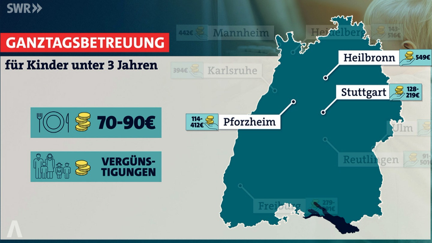 In den großen Städten und kleinen Kommunen in Baden-Württemberg sind die Anmeldungen für das neue Kita- und Kindergartenjahr längst abgeschlossen. Inzwischen haben viele Eltern Bescheid bekommen und wissen, wo und in welchem Umfang sie ab September einen Betreuungsplatz bekommen. Schon im Vorfeld war für viele klar, dass die Kinderbetreuung nochmal teurer wird. Vor allem bei Kindern unter drei Jahren sind die monatlichen Elternbeiträge hoch und die regionalen Unterschiede groß. Auch in der Kindertagespflege, also bei Tagesmüttern oder -vätern, werden sie mancherorts höher.