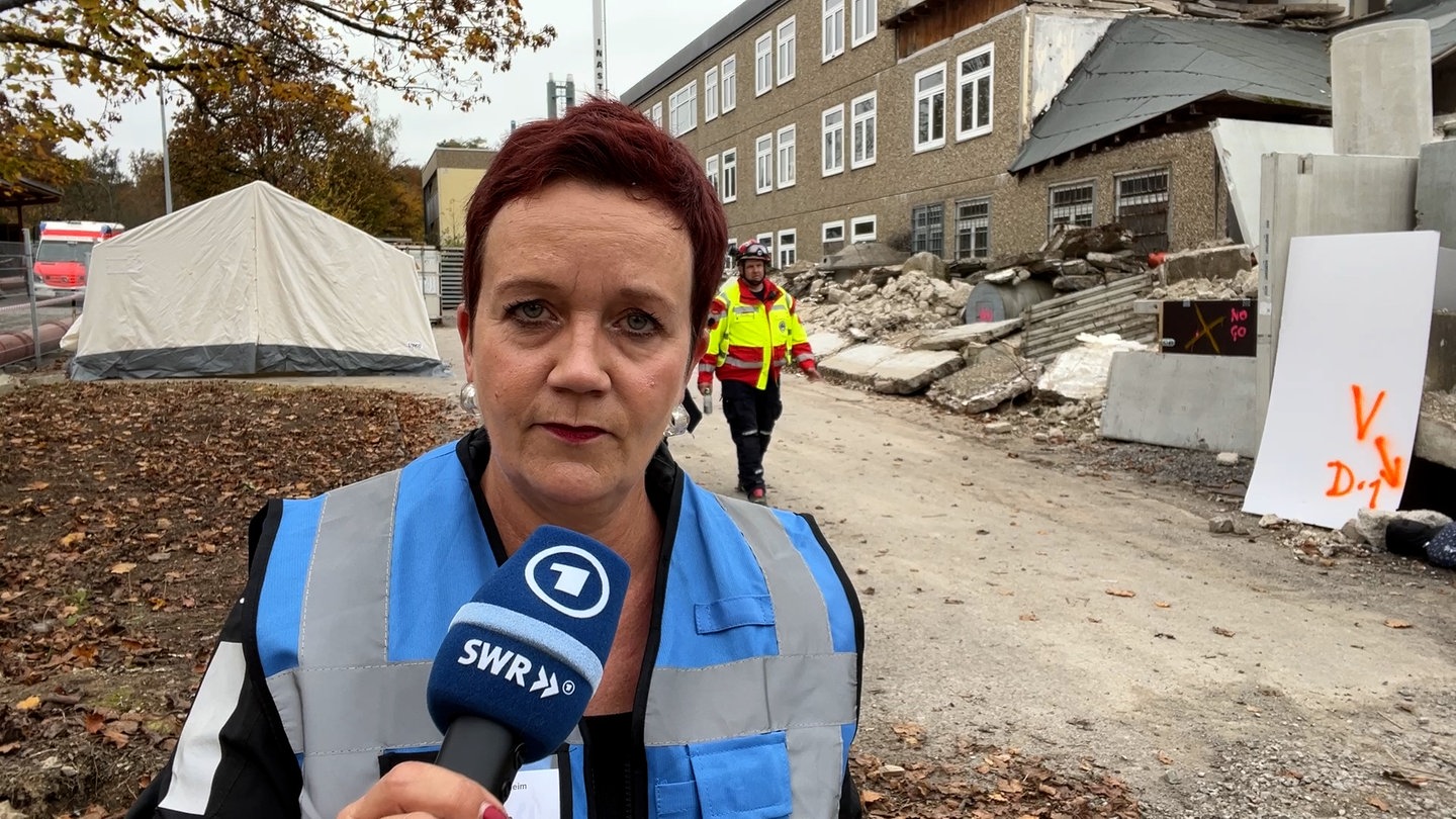 Das Szenario: Am frühen Morgen gab es ein starkes Erdbeben der Stärke 6,9. Mit Toten, Verletzten, Vermissten und Verschütteten. Die Einsatzkräfte sollten das in möglichst realistischem Umfeld trainieren. Rettungskräfte unter anderem des Technischen Hilfswerks (THW) suchten am Donnerstag beispielsweise nach Vermissten. Auch Hunde und Hubschrauber waren im fiktiven Einsatz.