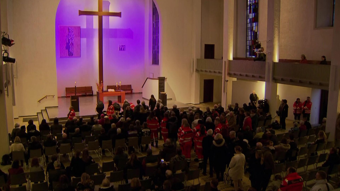 Pfarrerin Anne Ressel sagte zu Beginn der einstündigen Andacht, die Freude des Faschings sei durch die Tat binnen Minuten dem Schrecken gewichen. Die beteiligten Geistlichen sprachen Gebete für die Opfer und für die beteiligten Einsatzkräfte, umrahmt von Musik. Außerdem zündeten sie vor dem Altar wie zahlreiche Besucherinnen und Besucher Kerzen an.
