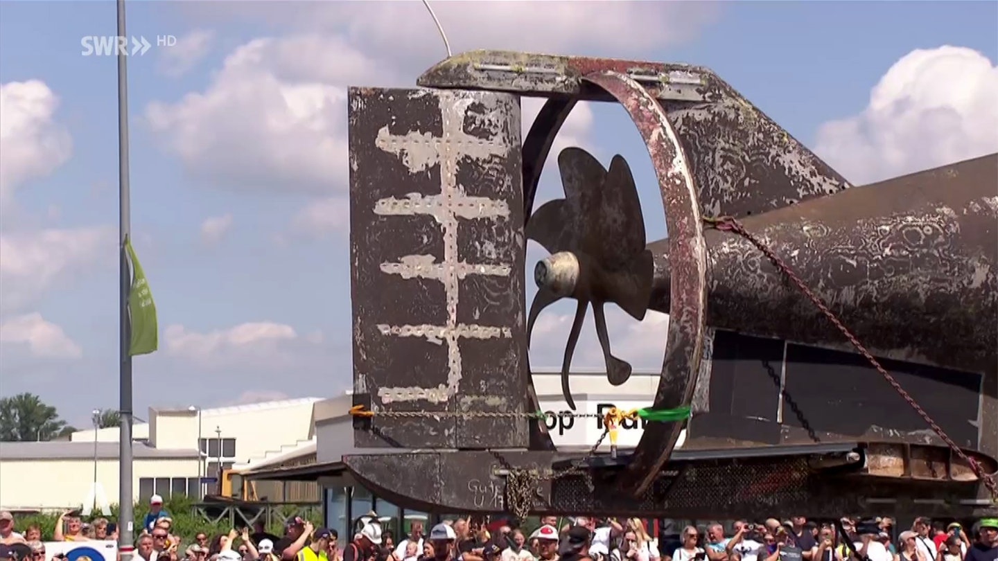 In den vergangenen vier Wochen ging es dann über Mannheim, Heidelberg und Eberbach (Rhein-Neckar-Kreis) bis Haßmersheim (Neckar-Odenwald-Kreis), dann auf dem Landweg weiter bis ins Technik Museum Sinsheim. Das fast 50 Meter lange und neun Meter hohe U-Boot passte in manchen Ortsdurchfahrten nur knapp zwischen Häusern und Hindernissen hindurch und musste immer wieder zur Seite gekippt werden.