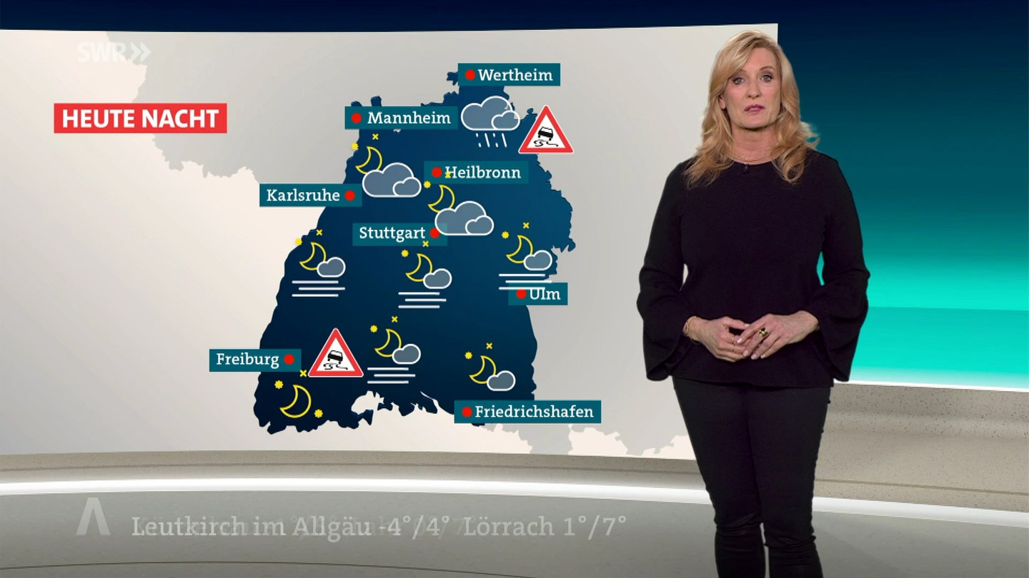 Nachdem die Temperaturen über Nacht in den Minusbereich fallen, kann es in vielen Teilen Baden-Württembergs morgens recht glatt werden. Mit Temperaturen von 0 bis zu -5 Grad in der Main-Tauber-Region starten wir in den Mittwoch. Vormittags ziehen meist dichte Wolkenfelder übers Land - lediglich im Nordwesten scheint bis zum Nachmittag die Sonne. Das Thermometer steigt auf 1 Grad in Ulm und bis auf maximal 10 Grad an den Westhängen des Schwarzwalds.