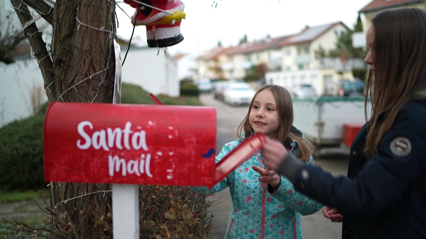 Die beiden Schwestern Elisa und Frida aus Esslingen am Neckar haben Post bekommen - vom Weihnachtsmann! Na gut - genau genommen von den "ehrenamtlichen Helfern" des Weihnachtsmanns, Matze und Denis Kegreiß. Die beiden Männer übergeben die Antworten von Santa Claus an diesem Nachmittag höchstpersönlich an die Mädchen.
