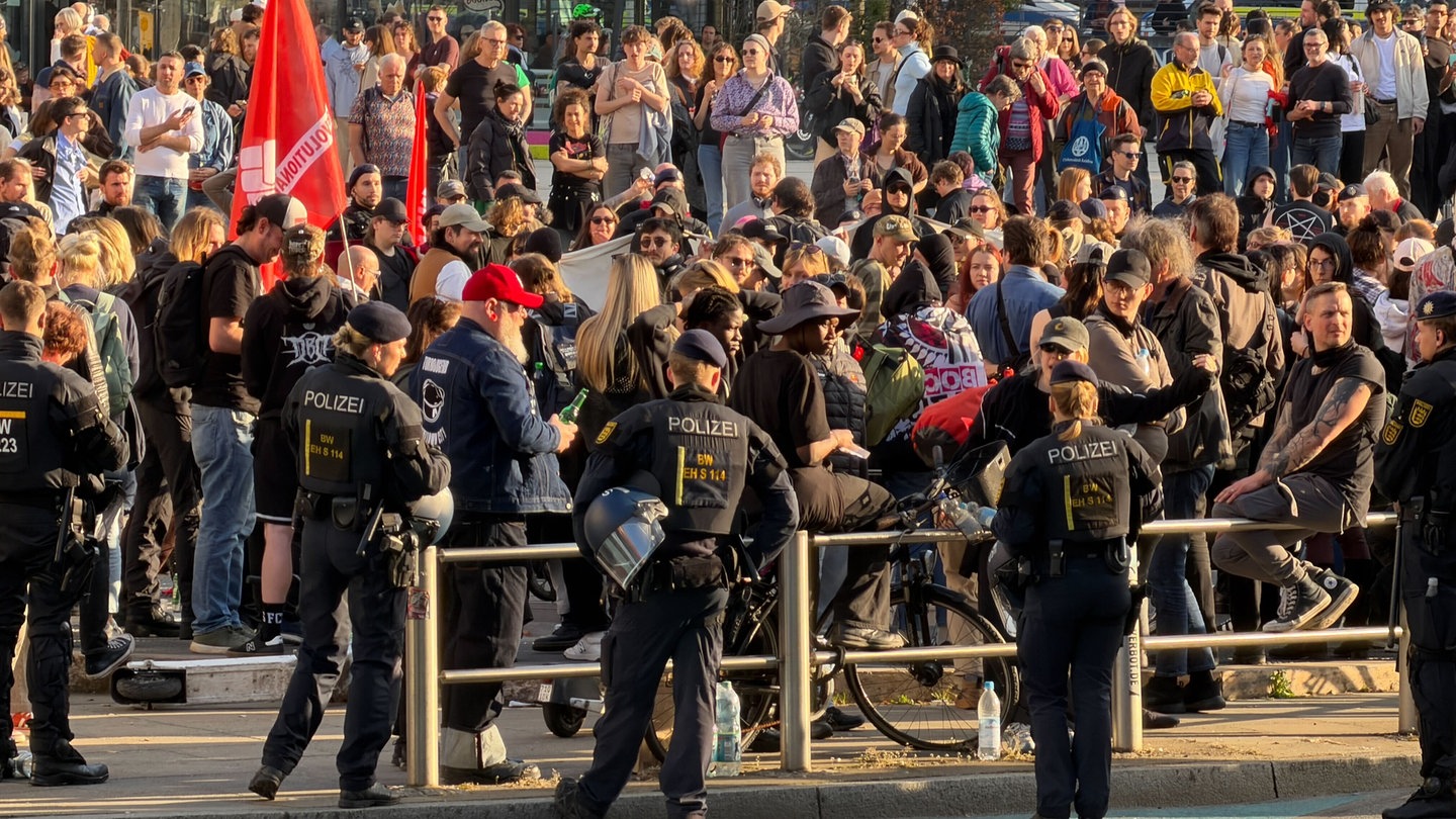 Angriffe auf Polizeibeamte seien auch Angriffe auf die Versammlungsfreiheit und deshalb nicht akzeptabel. So reagierte die Stadt Stuttgart am Dienstag auf SWR-Anfrage. Die Polizei hatte mehrere hundert Menschen stundenlang eingekesselt und festgesetzt. Die Veranstalter, das Aktionsbündnis "Stuttgart gegen rechts", sprechen von "Polizeigewalt". Sie hatten zum Gegenprotest am Marienplatz aufgerufen.
