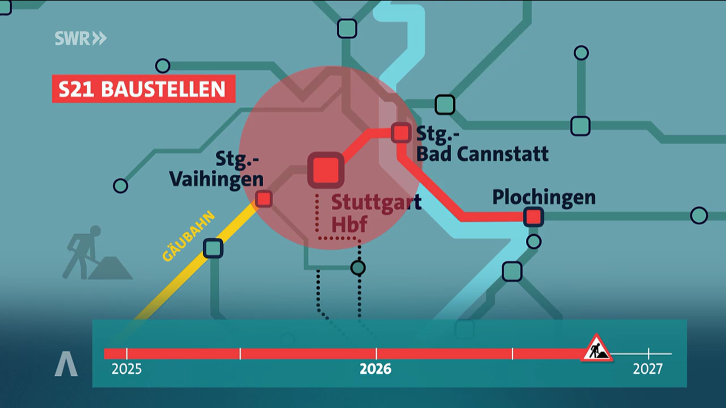 Eigentlich wäre Stuttgart 21 ja 2019 in Betrieb gegangen, wenn alles nach Plan gelaufen wäre, doch es gab immer wieder Verschiebungen. Vor einem Jahr wurde dann bekannt: Auch 2025 ist nicht mehr zu schaffen. Man verschob die Inbetriebnahme auf Dezember 2026. Bis dahin sollen Schritt für Schritt einzelne Elemente des neuen Tiefbahnhofs und des Digitalen Knotens Stuttgart in Betrieb genommen werden. Nur: Die Baustellen in den kommenden anderthalb Jahren nehmen überhand. Von einem regulären Fahrplan in den kommenden Monaten kann keine Rede mehr sein.