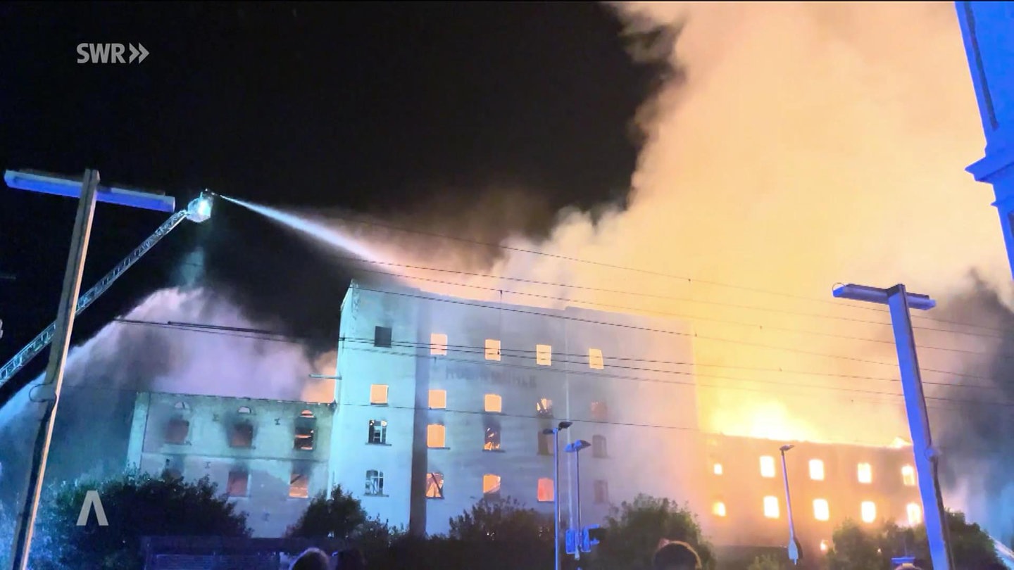 Der Brand am Sonntagmorgen hatte einen Großeinsatz der Feuerwehr ausgelöst. Das Gebäude stand komplett in Flammen. Nun besteht Einsturzgefahr. Der Schaden: Mindestens eine Million Euro.