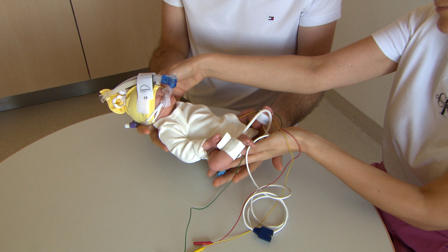 Bernhard Münch aus dem Bundesverband "Das frühgeborene Kind e.V." möchte mit dem Einsatz der Puppen Frühchen-Kliniken und Eltern unterstützen. Wichtig sei, dass Eltern und Kind so früh wie möglich eine Bindung aufbauen. Aber nicht nur für frischgebackene Eltern, sondern auch für die Auszubildenden im Schwarzwald-Baar-Klinikum ist es herausfordernd, Frühgeborene zu betreuen. "Lewis" bietet den angehenden Fachkräften die Möglichkeit, den sicheren Umgang mit den Kleinen in einem angstfreien Rahmen zu üben und so wichtige Erfahrungen zu sammeln.
