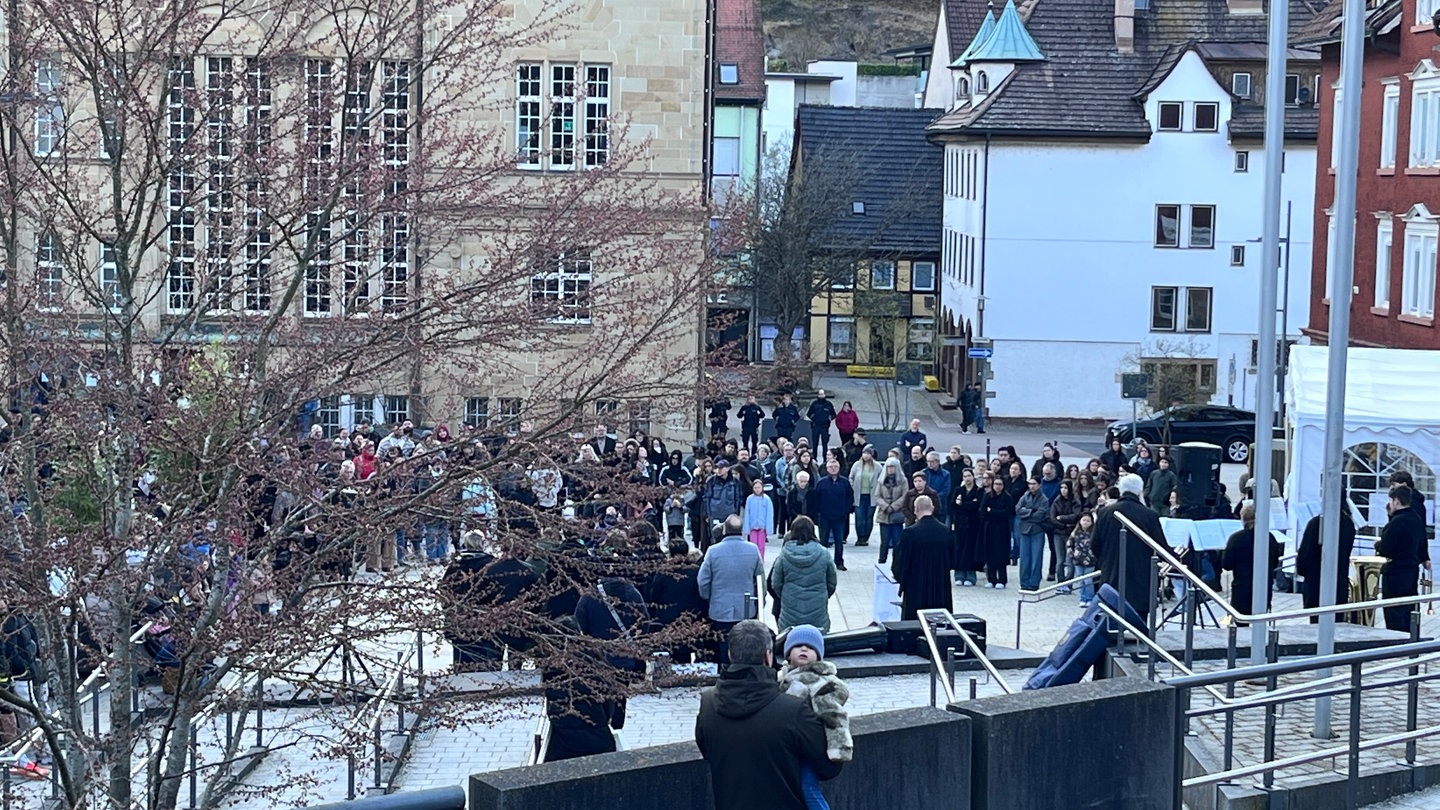 Die Gedenkfeier wurde von Geistlichen der katholischen und der evangelischen Kirche sowie einem muslimischen Imam begleitet. Sie sprachen bewegende Worte des Trostes. Die Oberbürgermeisterin von Schramberg, Dorothee Eisenlohr (parteilos), hatte sichtlich mit den Tränen zu kämpfen. Sie hoffe, dass die Familie der Opfer viel Kraft aus diesem gemeinsamen Gedenken schöpften und sagte: "Wir werden die beiden nie vergessen."