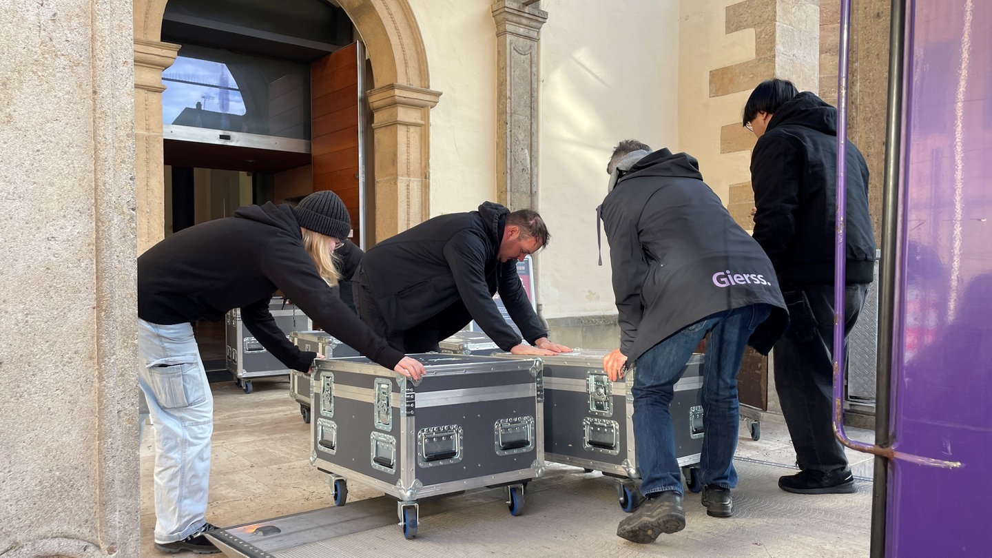 Geschäftiges Treiben auch im Rottenburger Dom. Hier findet die eigentlich Bischofsweihe statt. 50 Lampen müssen extra für die Veranstaltung installiert werden. Außerdem werden kleine Gerüste aufgebaut, an denen die Kameras für die Live-Übertragung befestigt werden. Der SWR überträgt die Weihe live in der ARD Mediathek.