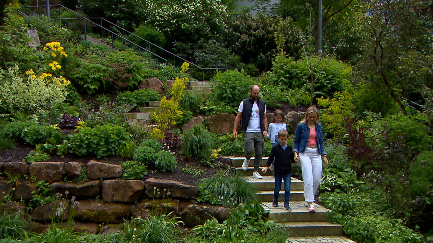 Außerdem geht es in den Röhren der Riesenrutsche auf dem Gelände der früheren Skisprungschanze rasant bergab. Aussichtspunkte rund um das Rotwildgehege laden zu einer kleinen Wanderung ein - eine der vielen Attraktionen für Familien, die auch nach der Gartenschau erhalten bleiben.